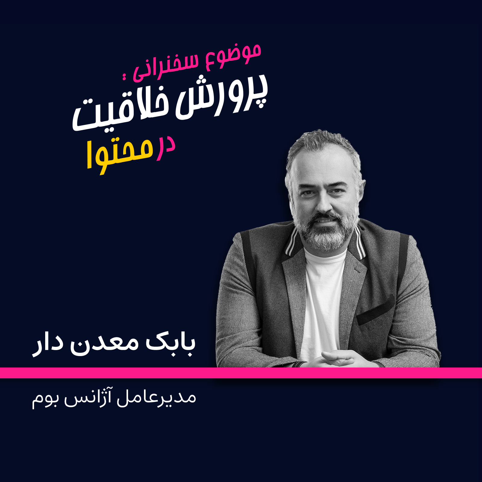 بابک معدن دار، مدیرعامل آژانس بوم، درباره اهمیت توجه به احساسات و عواطف انسان‌ها برای ایجاد محتوایی جذاب و تاثیرگذارتر صحبت کرد. INSIGHT به عنوان یک حقیقت بنیادی درباره انسان و عواطف و رفتارش مطرح شده است که می‌تواند به عنوان اهرمی برای ساخت برند مورد استفاده قرار گیرد. برندها باید به شکلی ارزشمند و متفاوت با مخاطب ارتباط برقرار کنند تا برند آن‌ها ارزش مورد نظر مخاطب را فروخته و تبدیل به برندی با ارزش شوند.