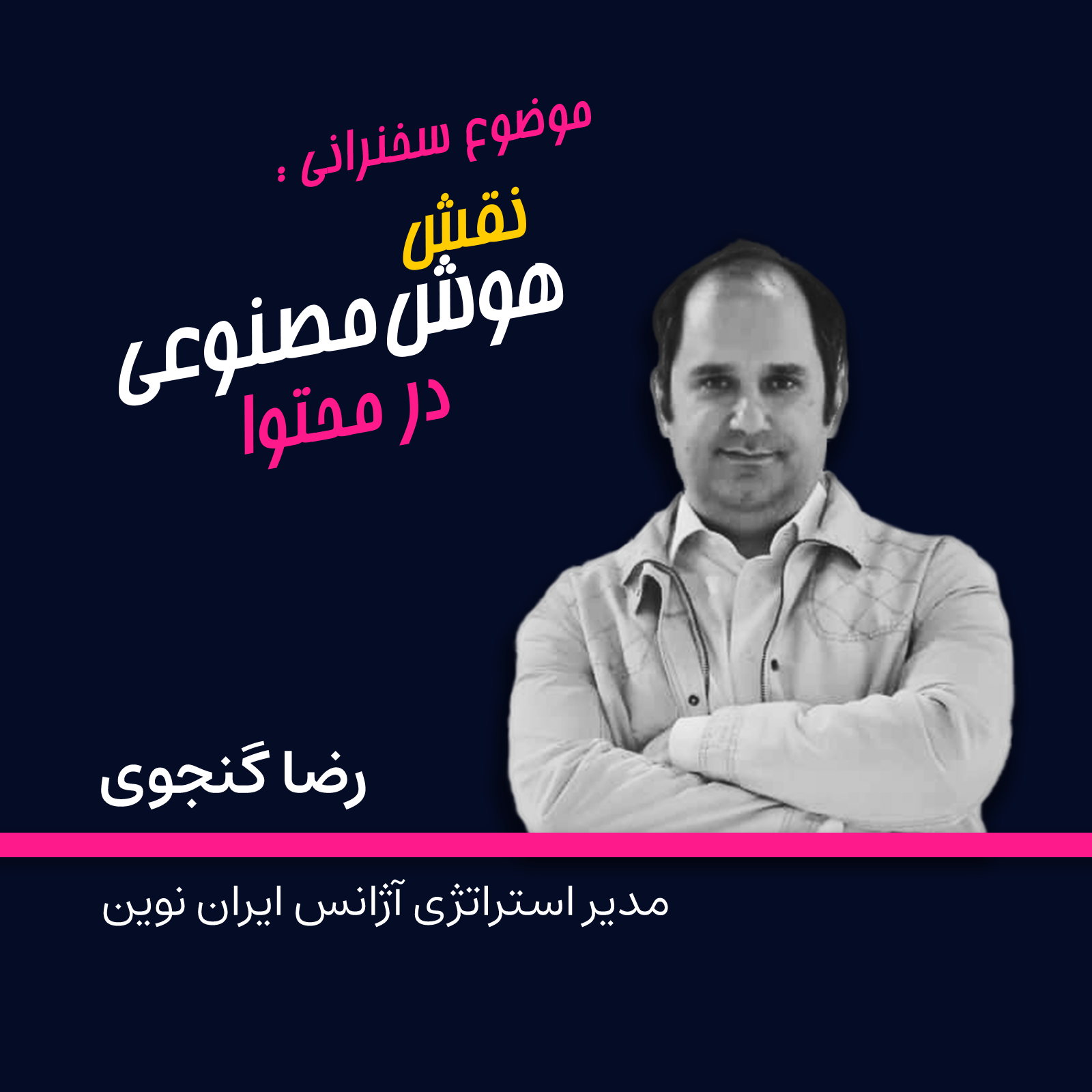 آقای رضا گنجوی، مدیر استراتژی آژانس ایران نوین هم مثل همیشه با یک ارائه جذاب درباره هوش مصنوعی و تاثیر آن در محتوا و استراتژی تبلیغات گفت. وی همچنین از آژانس جدید ایران نوین بر پایه هوش مصنوعی به نام “بکستودیو” رونمایی کرد.